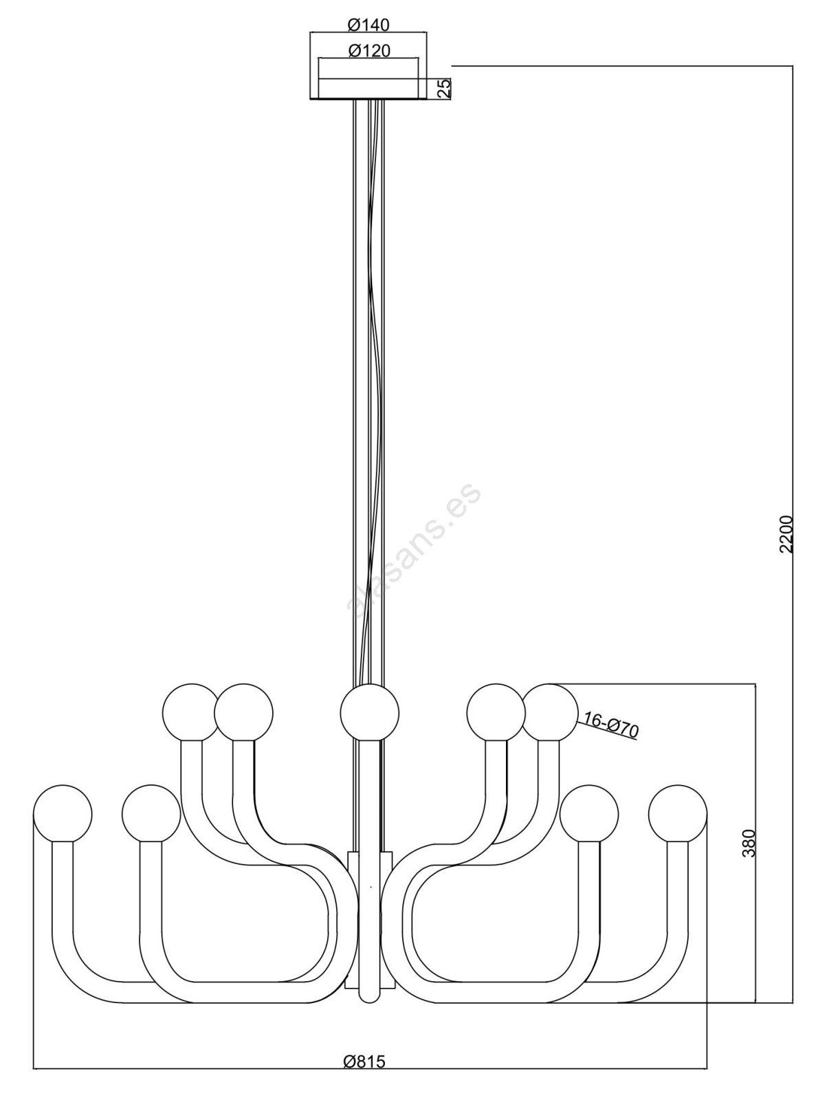 • Ondaluce - Lámpara colgante con cable DERBY 16xG9/7W/230V diámetro 81,5 cm negra