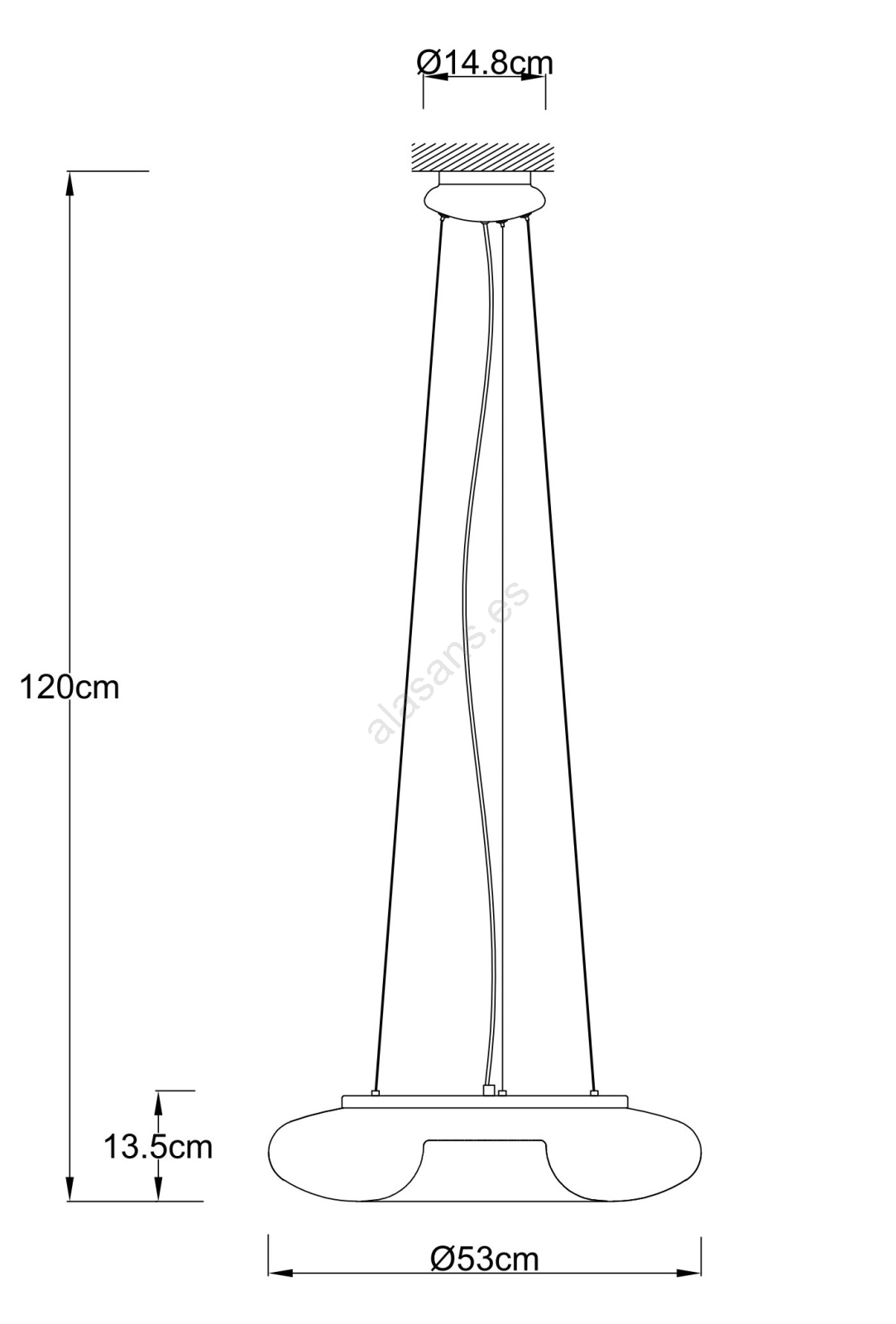 Ondaluce - Lámpara colgante con cable DODI 2xE27/15W/230V Ø 53 cm blanca