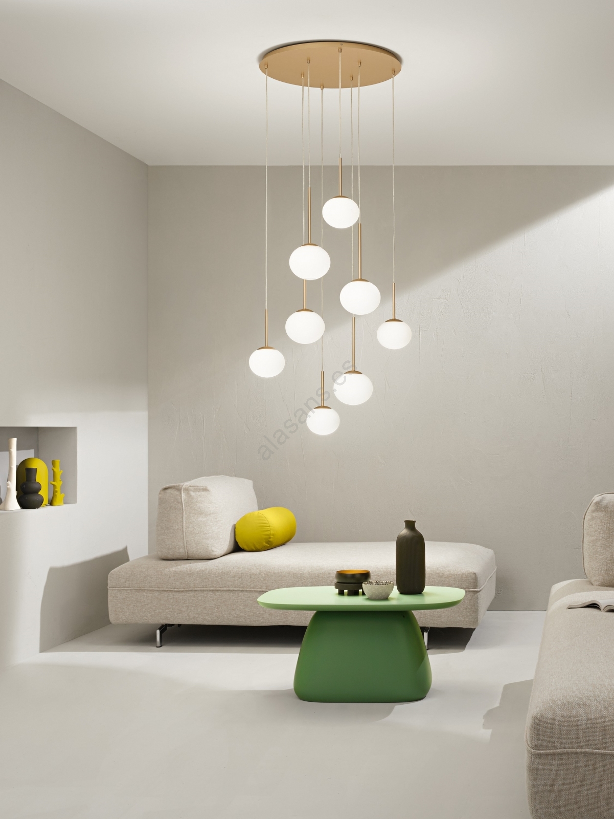 Ondaluce - Lámpara colgante con cable JEWEL 8xE14/10W/230V Ø 70 cm dorado/blanco
