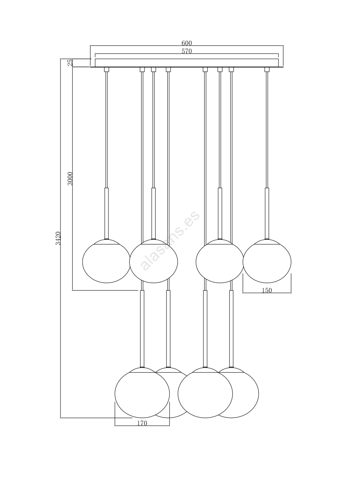 • Ondaluce - Lámpara colgante de cable JEWEL 8xE14/10W/230V diámetro 70 cm negro ahumado