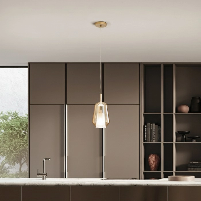 • Ondaluce - Lámpara colgante con cable THELMA 1xE27/15W/230V beige ahumado
