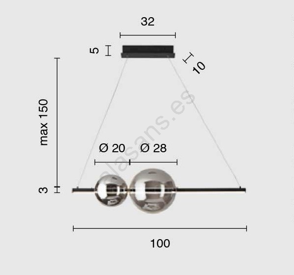 Ondaluce - Lámpara colgante LED regulable con cable FUFI LED/40W/230V negro ahumado negro