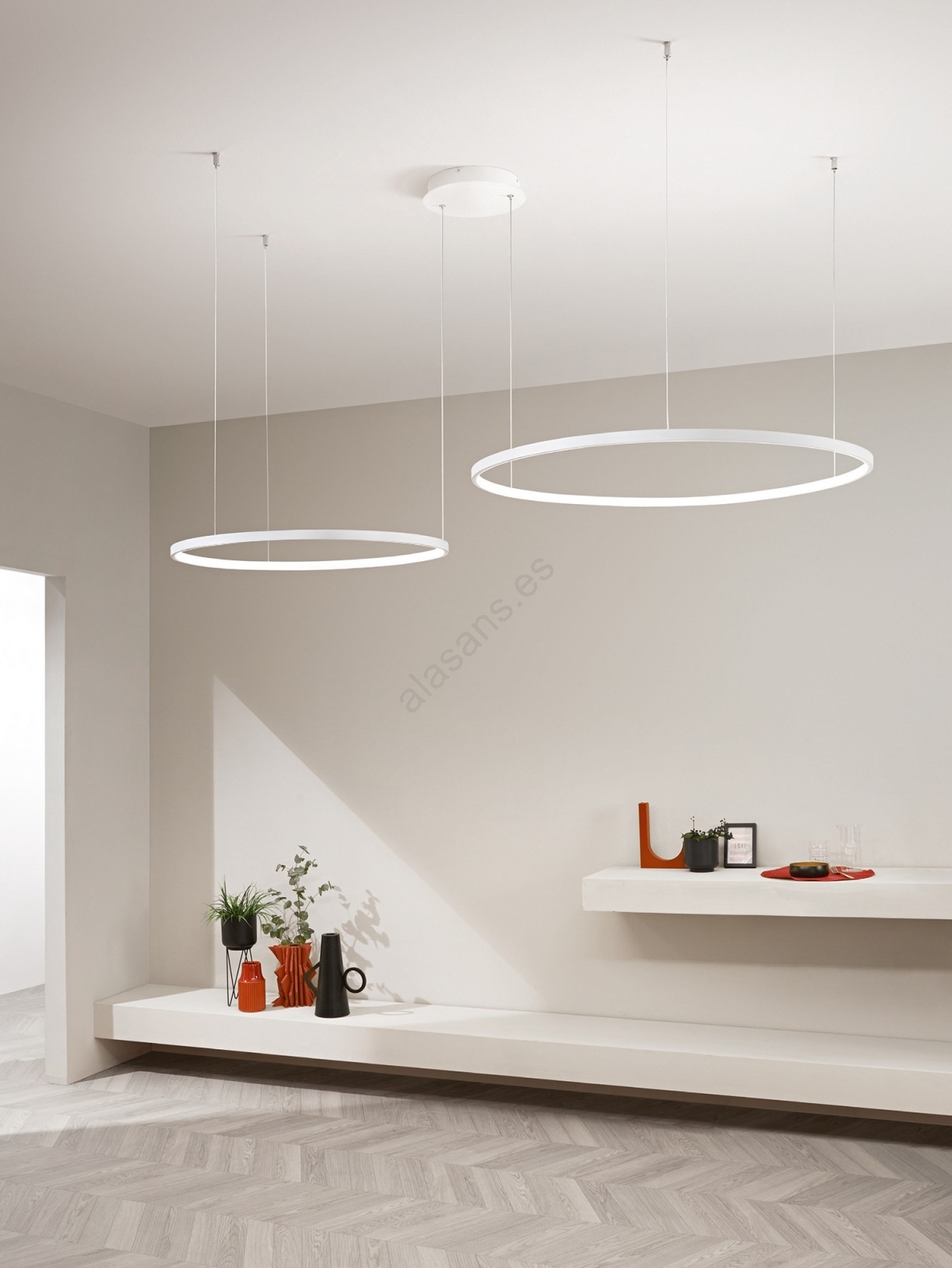Ondaluce - Lámpara colgante LED regulable con cable SOEL LED/28W/230V + LED/38W Ø 80/60 cm blanca