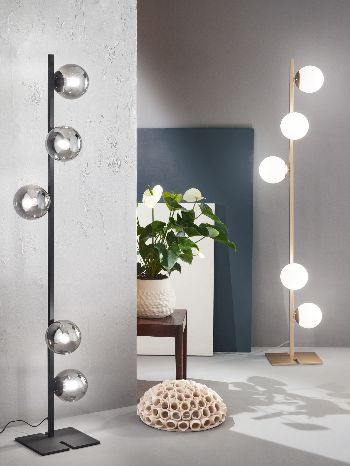 • Ondaluce - Lámpara de pie MONILE 5xE14/10W/230V negra ahumada