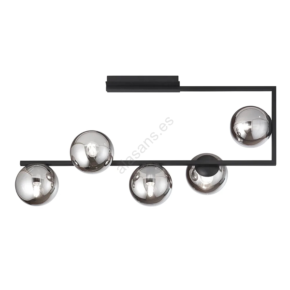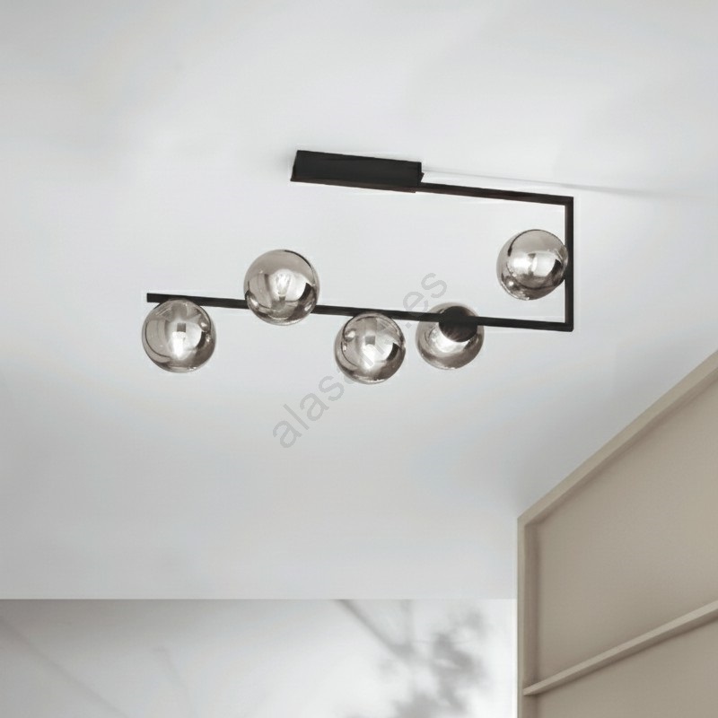 Ondaluce - Lámpara de techo con varilla MONILE 5xE14/10W/230V negro ahumado/negro