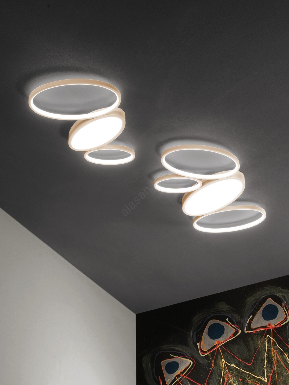 Ondaluce - Luminaria LED de techo regulable RICE LED/34W/230V 45x80 cm dorada