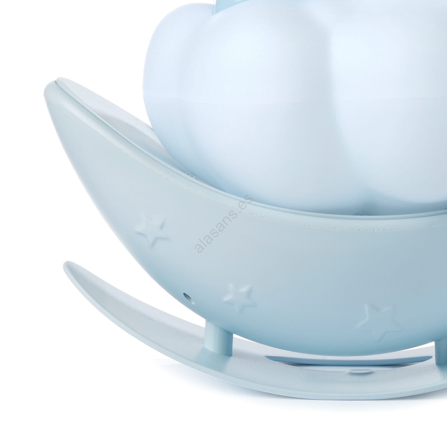 • La base consiste en una media luna de delicado azul con estrellitas destacadas, que se balancea suavemente al tocarla.