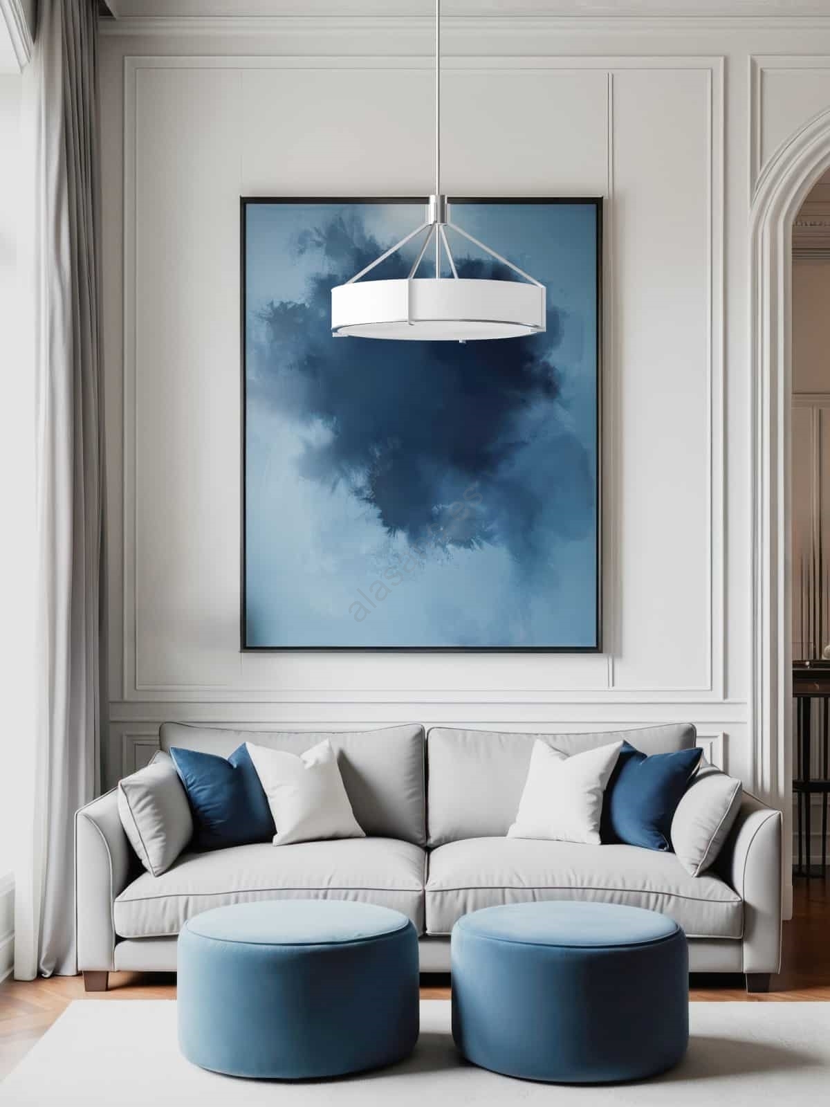 • Open Design OR85624 - Lámpara de techo con varilla DORETTO 4xE27/15W/230V, diámetro 50 cm, cromo mate/blanco