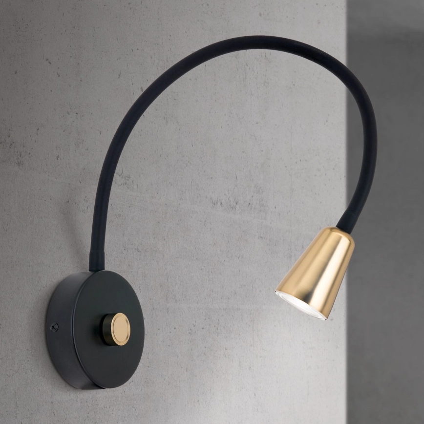 Aplique de pared flexible y regulable DOTTY 1xGU10/10W/230V negro/latón