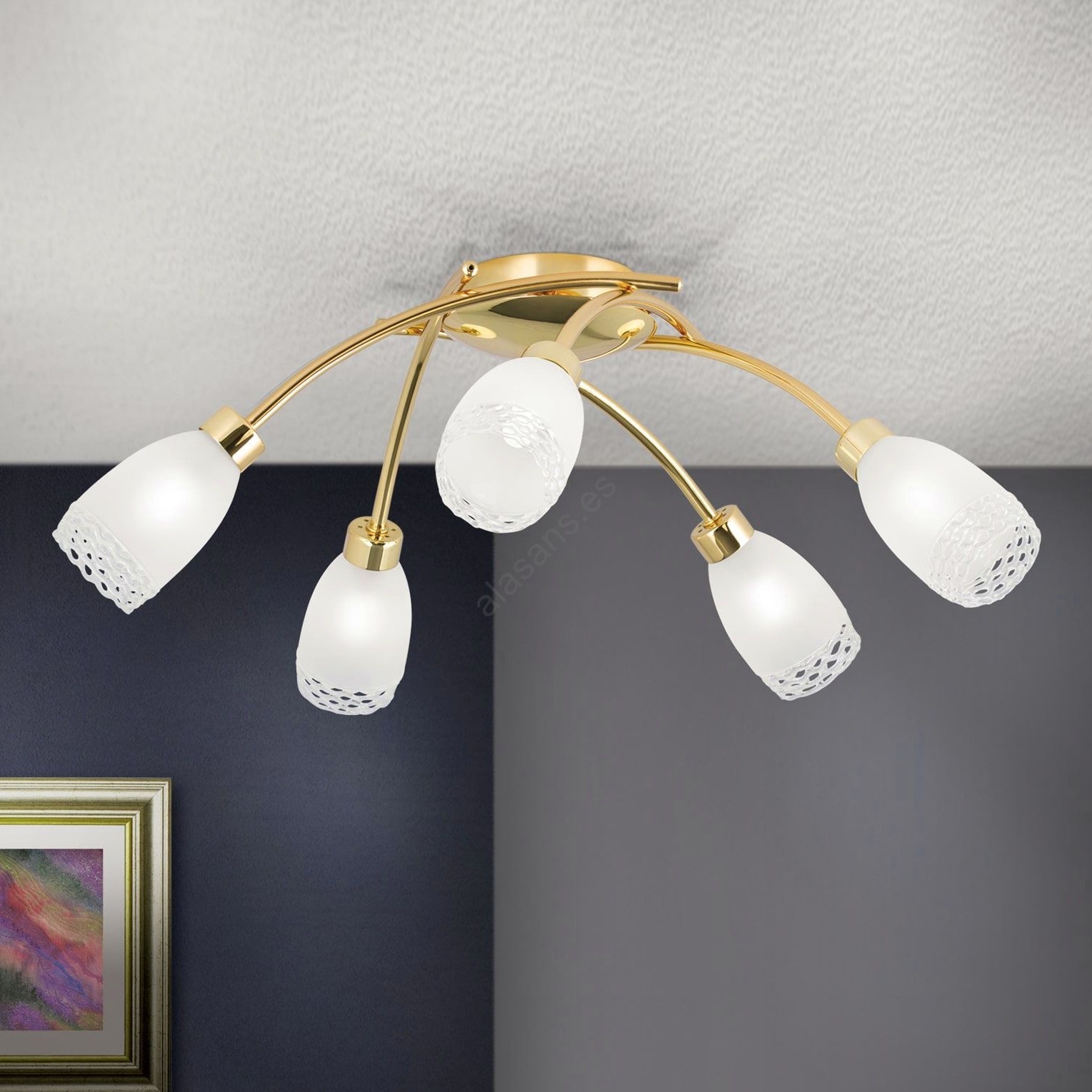 El diseño bonito y funcional caracteriza a Lámpara de techo de montaje en superficie CARLA 5xG9/28W/230V dorada.  Una bombilla con casquillo G9 es adecuada para la lámpara. Aquí, puedes comprar otras bombillas a precios ventajosos. Será una adición interesante para tu hogar.
