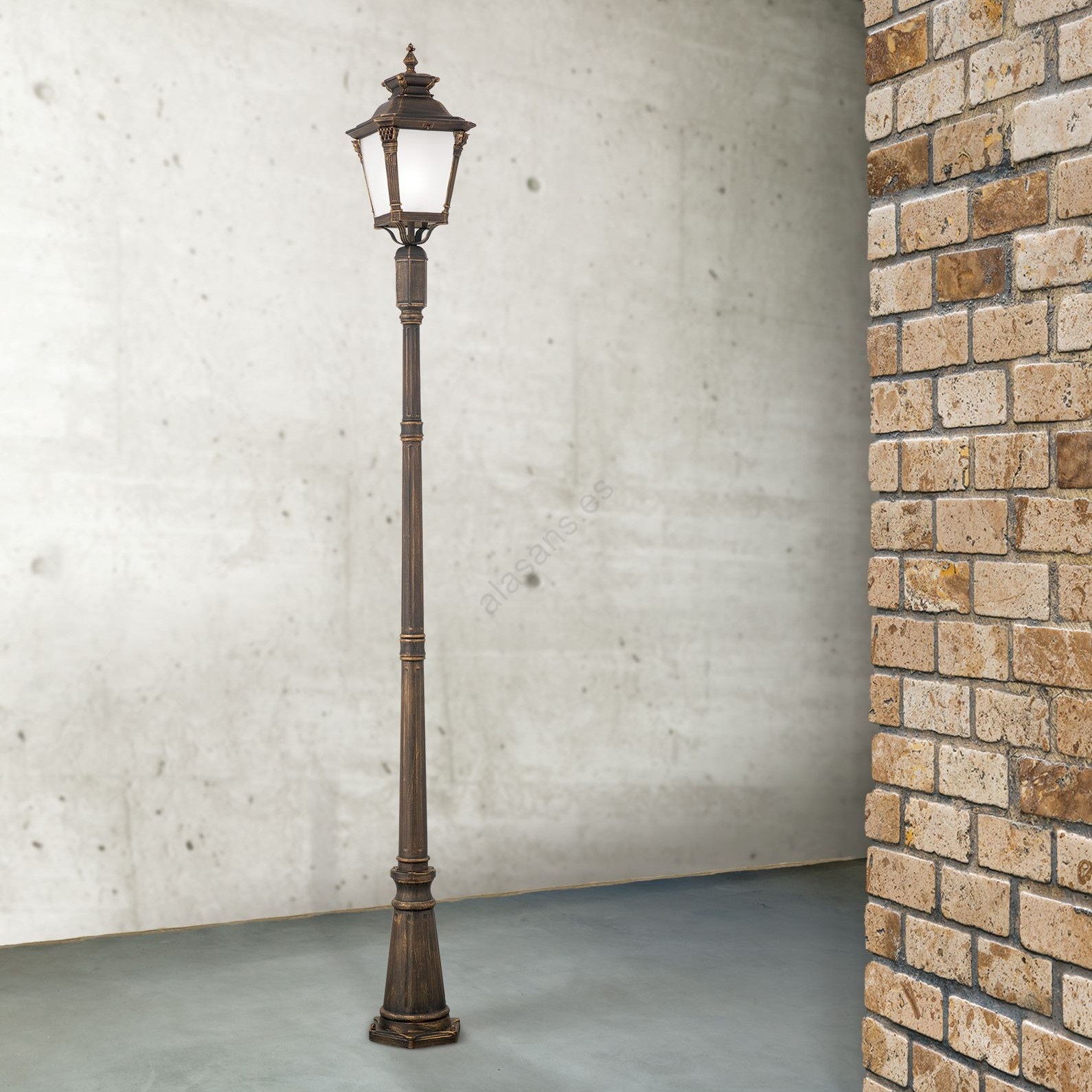 El diseño bonito y funcional caracteriza a Lámpara exterior AIKO 1xE27/60W/230V 240 cm IP23 bronce/pátina.  Una bombilla con casquillo E27 es adecuada para la lámpara. Aquí, puedes comprar otras bombillas a precios ventajosos. Será una adición interesante para tu hogar.