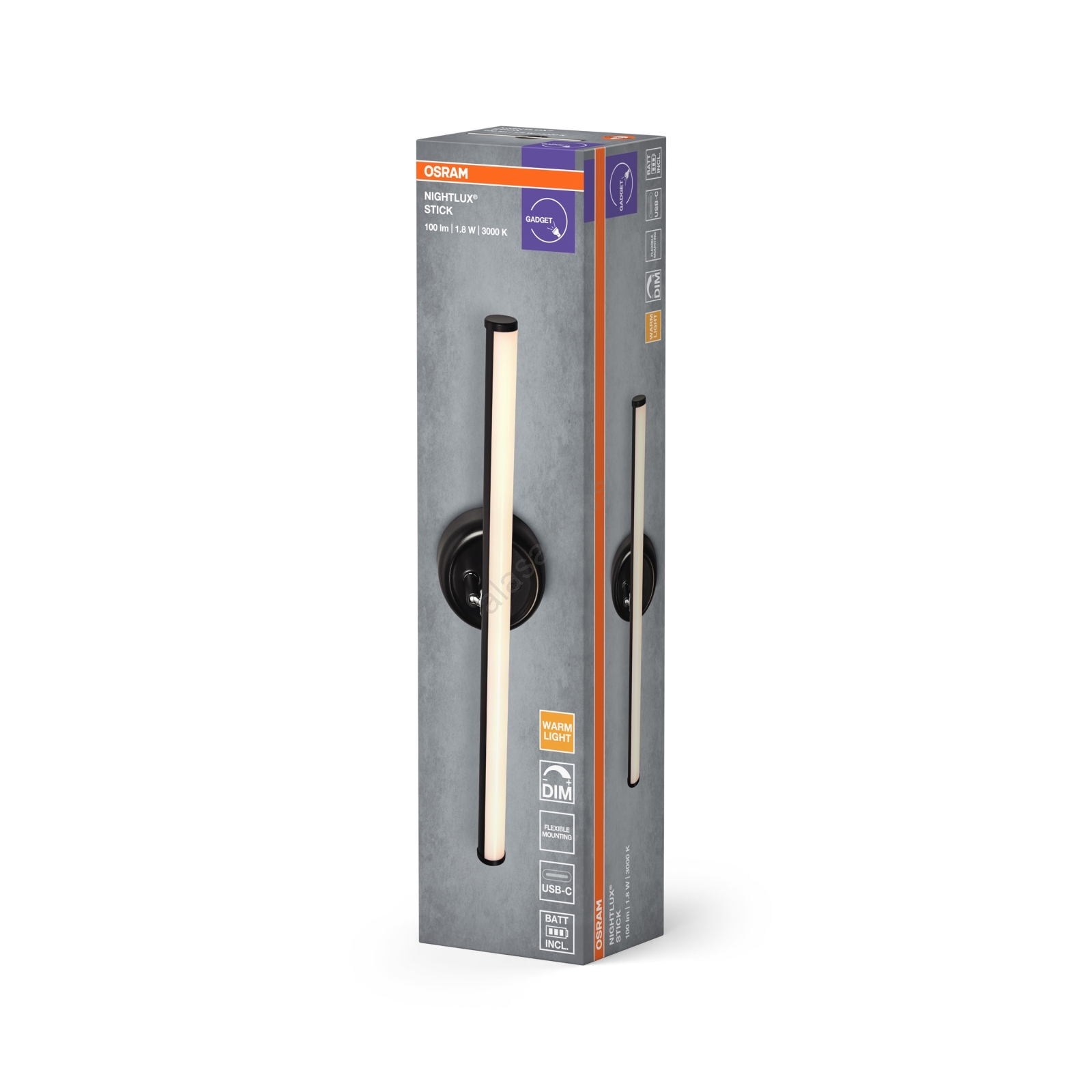 Osram - Aplique de pared táctil recargable y regulable NIGHTLUX LED/1,8W/5V negro
