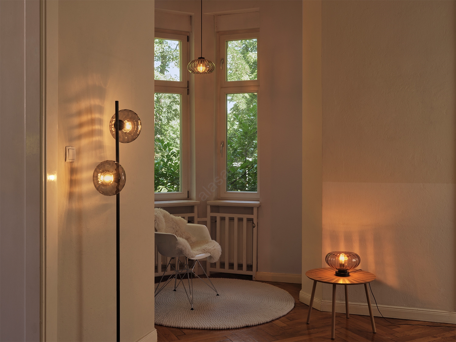 El diseño bonito y funcional caracteriza a Osram - Lámpara colgante con cable DECOR SMOKE 1xE27/12W/230V, diámetro 28 cm, negro/gris ahumado.  Una bombilla con casquillo E27 es adecuada para la lámpara. Aquí, puedes comprar otras bombillas a precios ventajosos. Será una adición interesante para tu hogar.