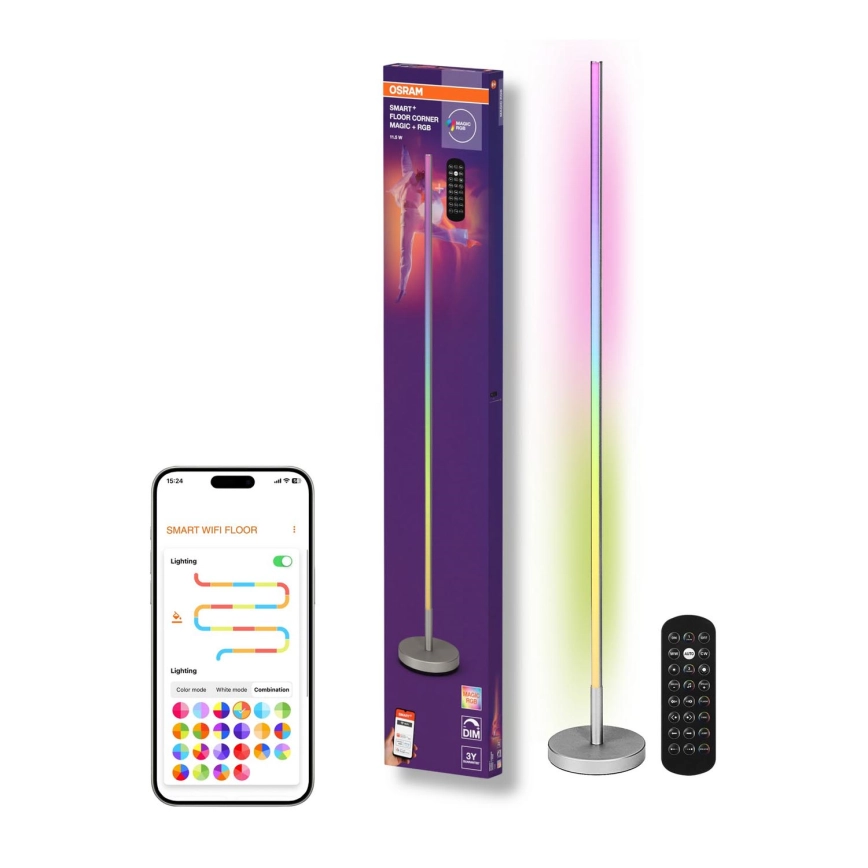Osram - Lámpara de pie LED RGBW regulable SMART+ MAGIC LED/11,5W/230V 2700-6500K plateada Wi-Fi + control remoto