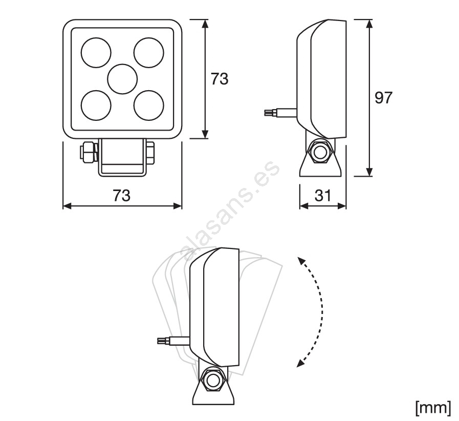 • El foco es versátil en su uso y constituye un complemento eficaz para camiones, maquinaria de construcción, vehículos agrícolas, vehículos utilitarios y todoterreno.