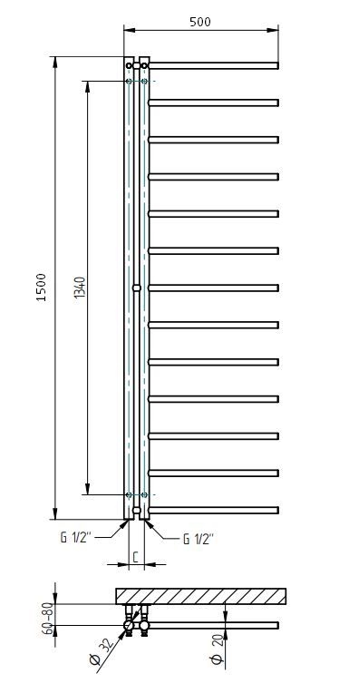 P.M.H. AP2C - Radiador toallero en escalera para baño APOLLO 219W 150 cm derecho/cromo brillante