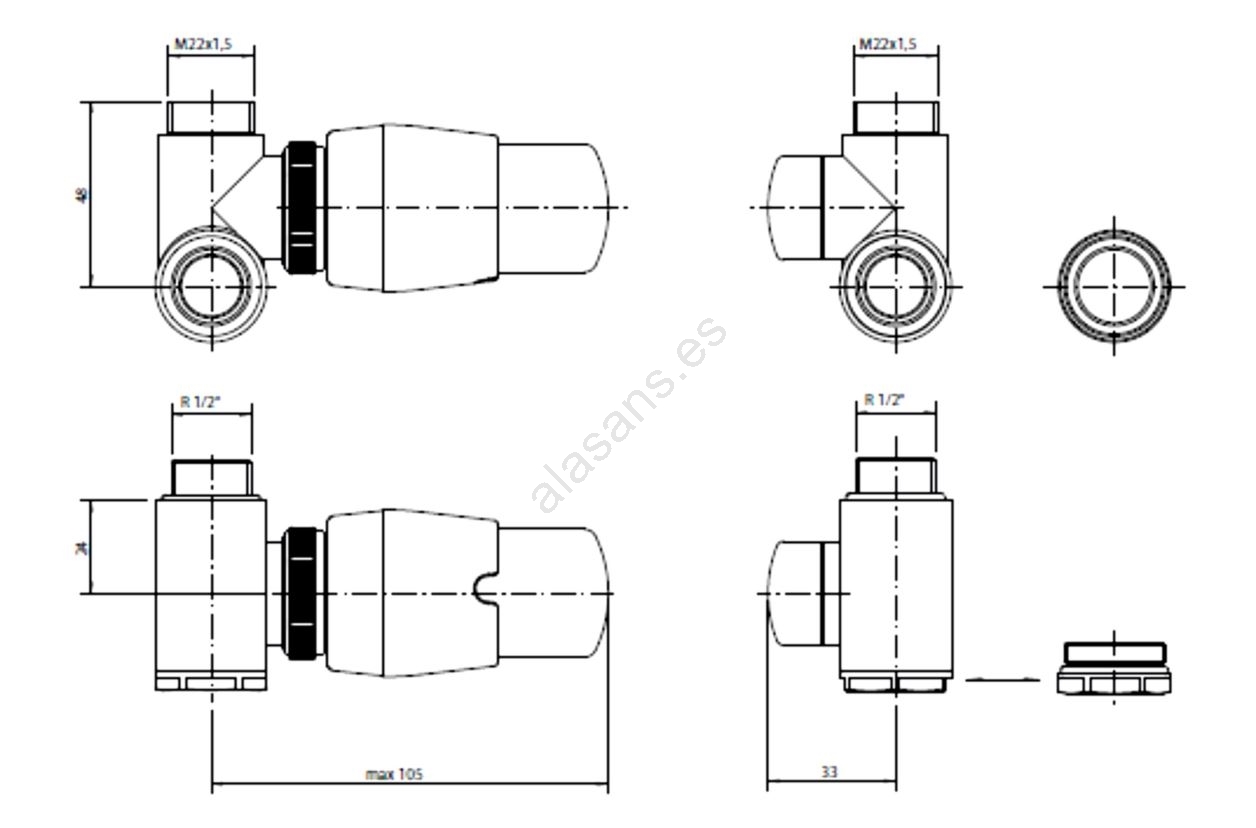 P.M.H. INTER-LW - Válvula con cabezal termostático INTER izquierda/blanca
