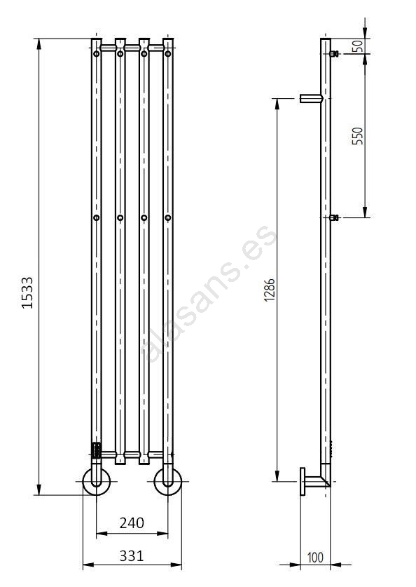 P.M.H. MO1SS-LK - Toallero eléctrico para toallas MONA 93W/230V 153,3 cm IP44 acero inoxidable pulido