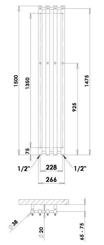 P.M.H. R2W - Radiador toallero de baño tipo escalera ROSENDAL 350W 150 cm blanco