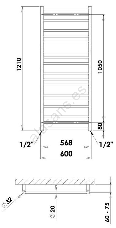 P.M.H. SN4W - Radiador toallero para baño SORANO 470 W 121 cm blanco