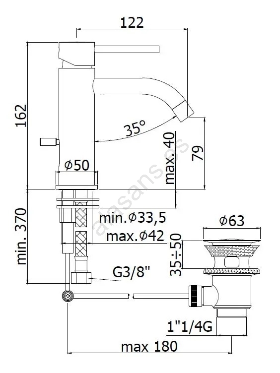 • Grifo monomando para lavabo con válvula de desagüe.