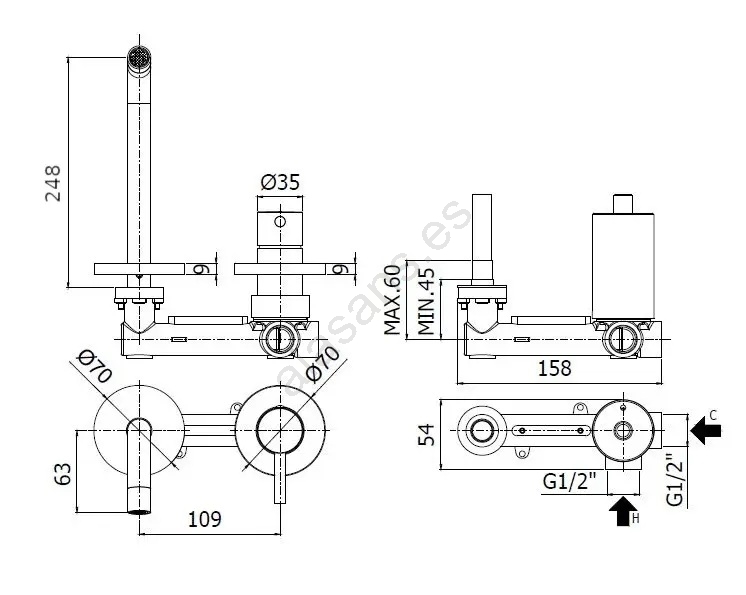 • Incluye rosetas circulares para ocultar los orificios en la pared.