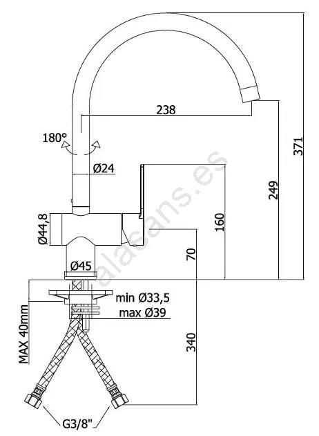 • Caño giratorio 180° para un manejo cómodo en el fregadero y mayor alcance en el área de trabajo.
