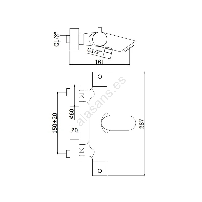 • Separación de montaje en pared: 150 mm.