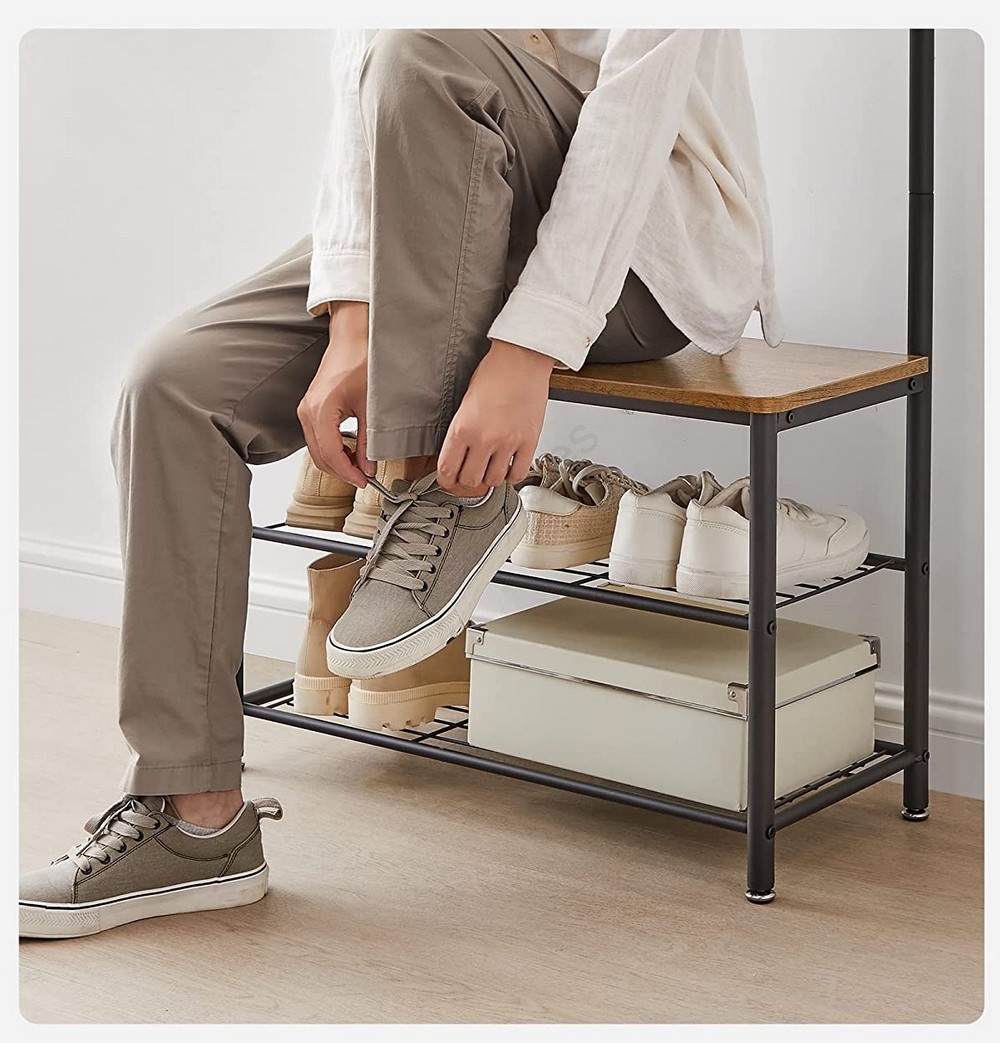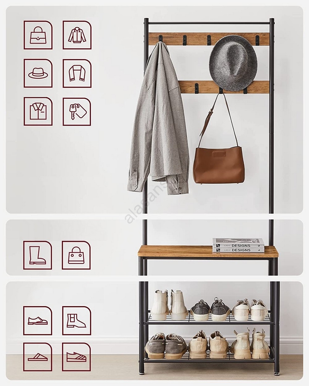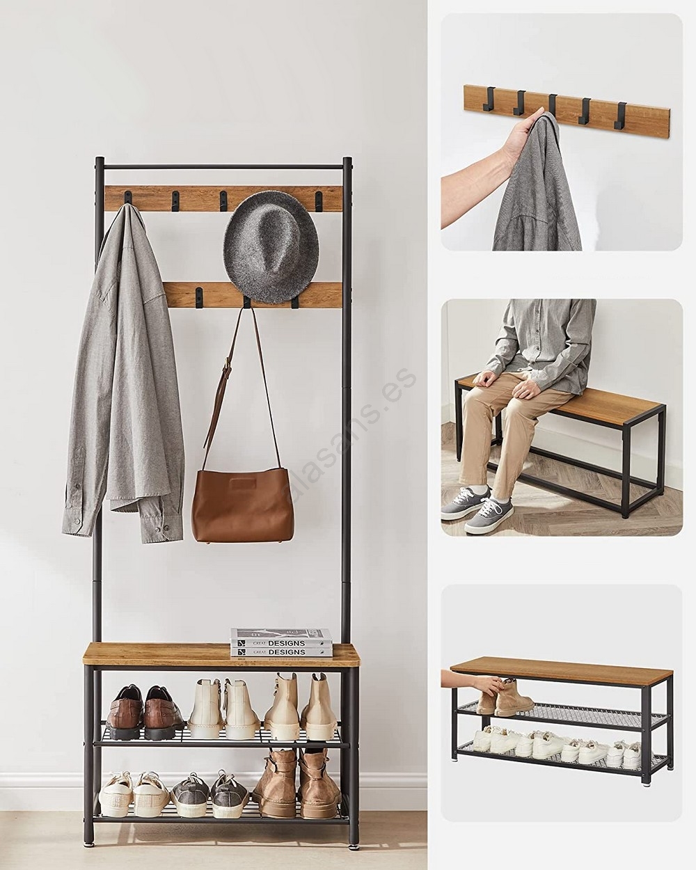 • Aporta a su hogar el encanto de la madera y la robustez del metal con este estiloso perchero de diseño industrial.
