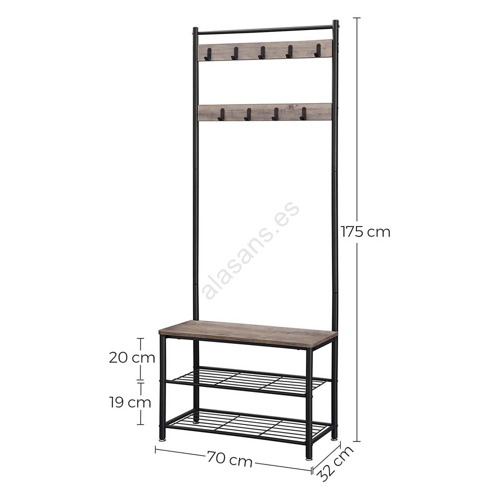 • Aporta a su hogar el encanto de la madera y la solidez del metal con este elegante perchero de estilo industrial.