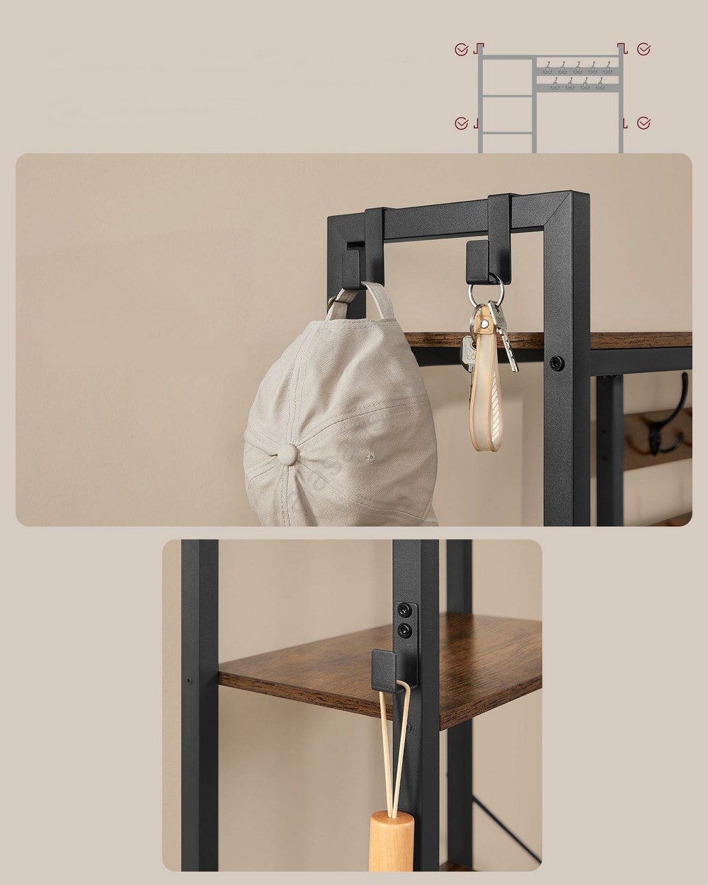 • Aporta a tu hogar el encanto de la madera y la solidez del metal con este elegante perchero de diseño industrial.