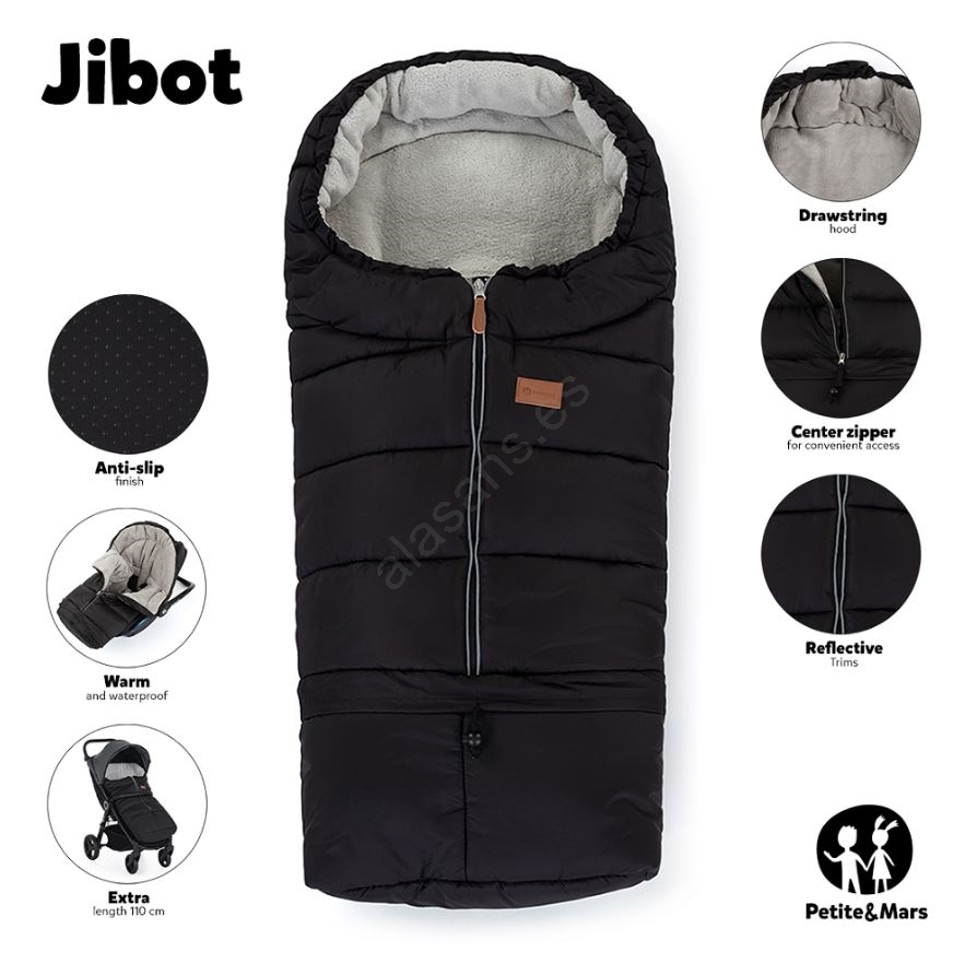 • El tratamiento antideslizante en la parte trasera del fusak (ABS) previene el deslizamiento en el cochecito.
