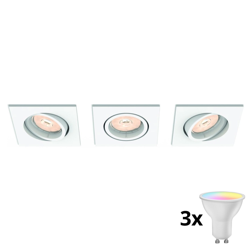 Philips - Pack de 3 luminarias empotrables LED RGBW regulables 1xGU10/4,8W/230V, color blanco + mando a distancia