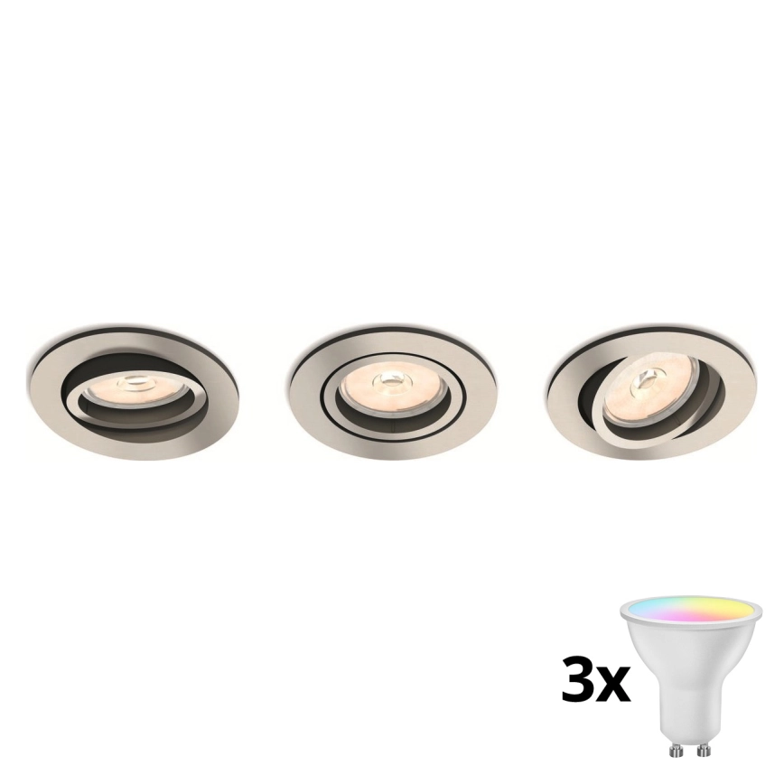 Philips - Pack de 3 luminarias empotrables LED RGBW regulables 1xGU10/4,8W/230V cromo mate + mando a distancia