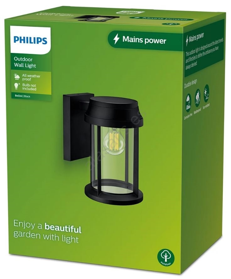 El diseño bonito y funcional caracteriza a Philips - Aplique de exterior BELLINI 1xE27/25W/230V IP44.  Una bombilla con casquillo E27 es adecuada para la lámpara. Aquí, puedes comprar otras bombillas a precios ventajosos. Será una adición interesante para tu hogar.