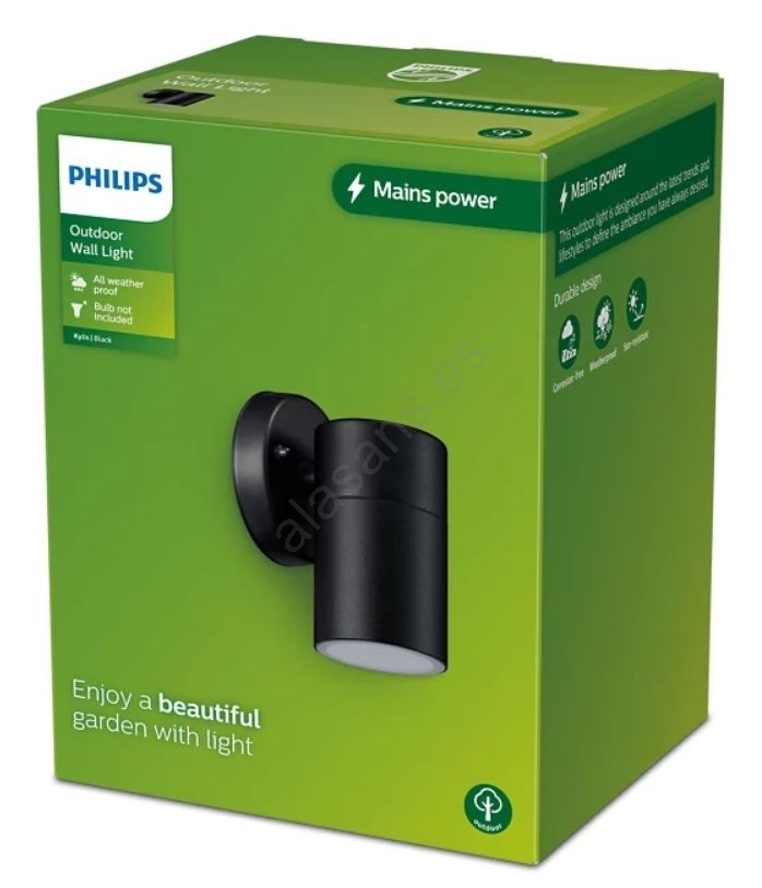 El diseño bonito y funcional caracteriza a Philips - Aplique de exterior KYLIS 1xGU10/25W/230V IP44.  Una bombilla con casquillo GU10 es adecuada para la lámpara. Aquí, puedes comprar otras bombillas a precios ventajosos. Será una adición interesante para tu hogar.