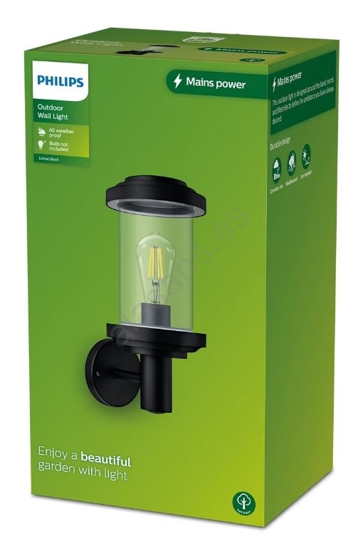 El diseño bonito y funcional caracteriza a Philips - Aplique de exterior LISTRA 1xE27/25W/230V IP44.  Una bombilla con casquillo E27 es adecuada para la lámpara. Aquí, puedes comprar otras bombillas a precios ventajosos. Será una adición interesante para tu hogar.