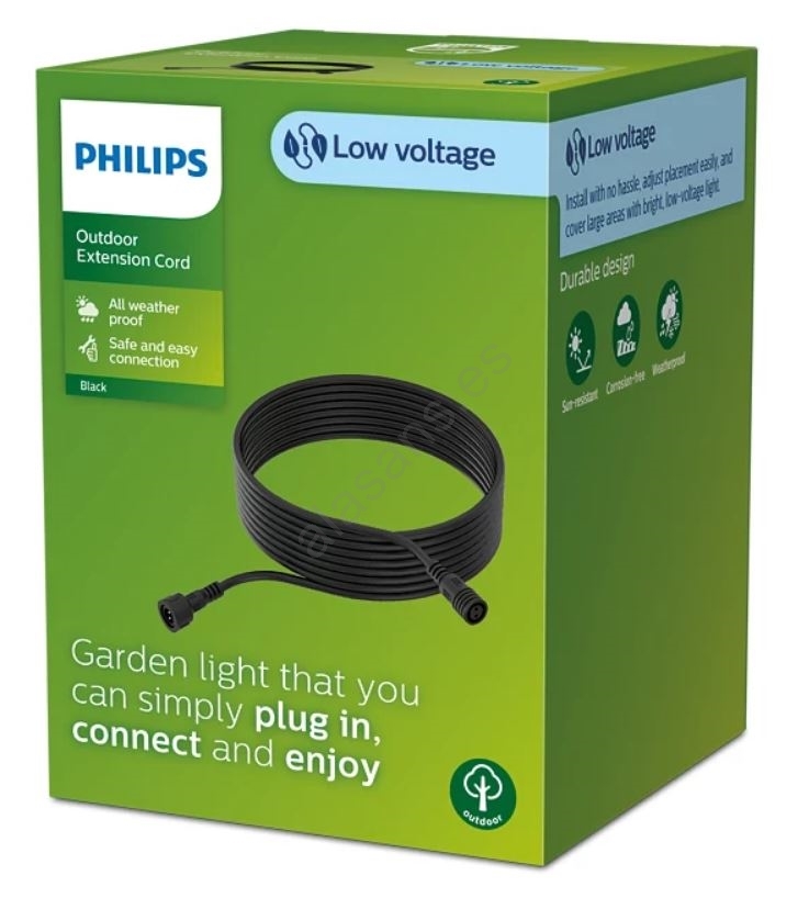 • El cable de extensión para exteriores está especialmente diseñado para ambientes húmedos al aire libre y ha sido rigurosamente probado para resistir el agua.