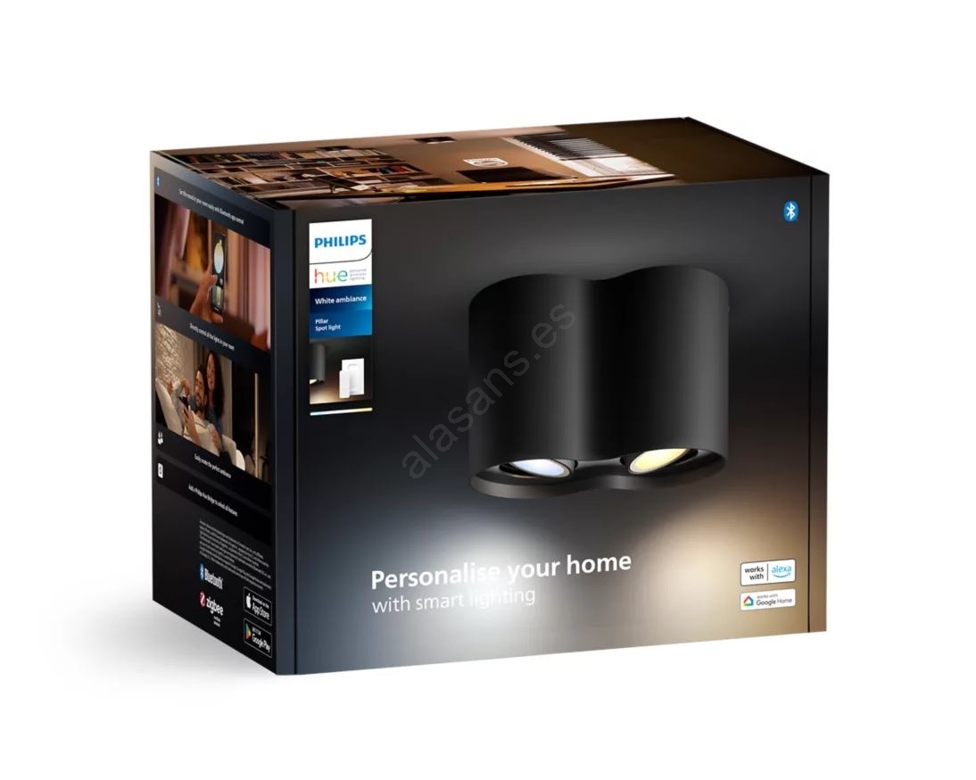 • Philips - Foco LED regulable Hue PILLAR 2xGU10/4,2W/230V 2200-6500K + control remoto negro