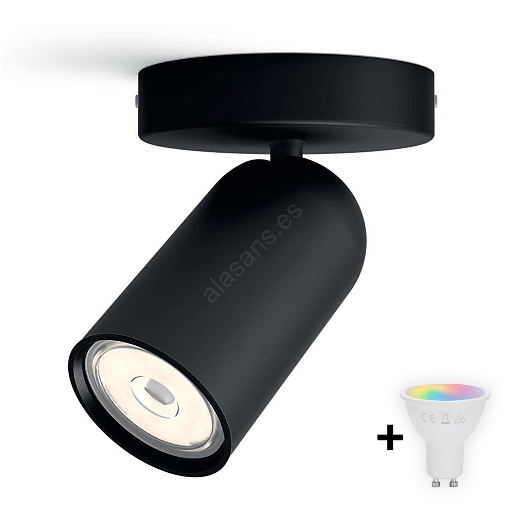 • Philips - Foco empotrable LED RGBW regulable PONGEE 1xGU10/4,8W/230V 3000K negro + mando a distancia