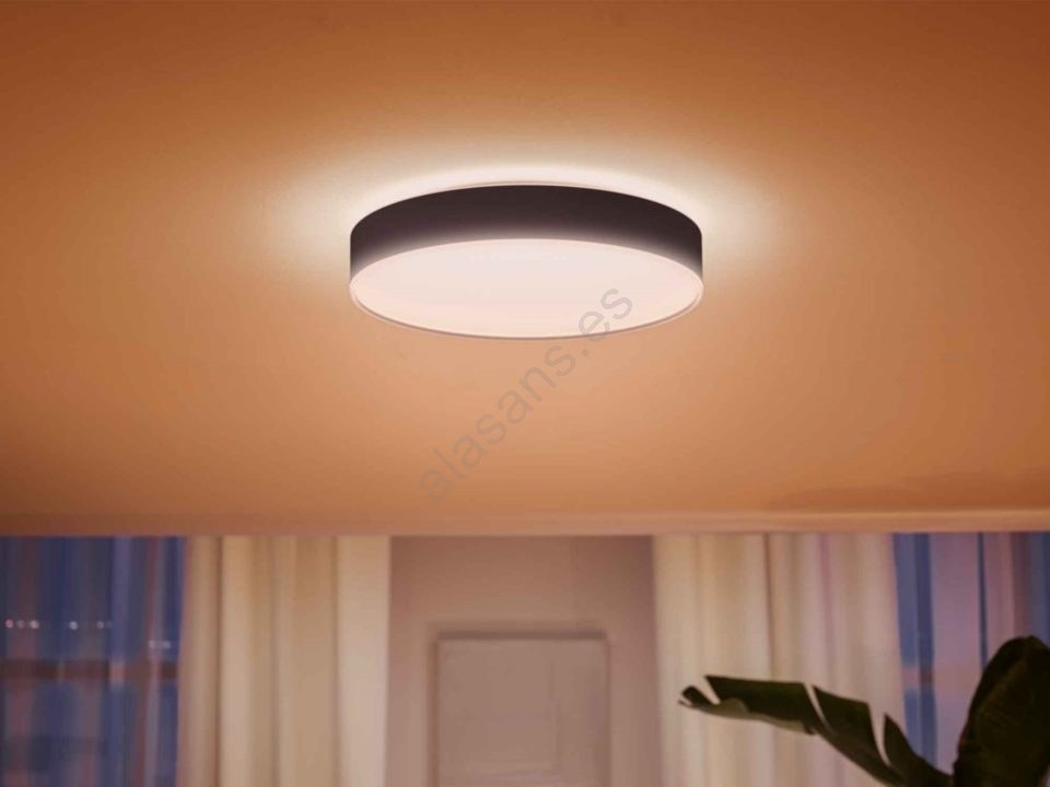 • Disfrute de una luz suave gracias a la lámpara de techo Philips Hue White Ambiance con ambiente blanco.