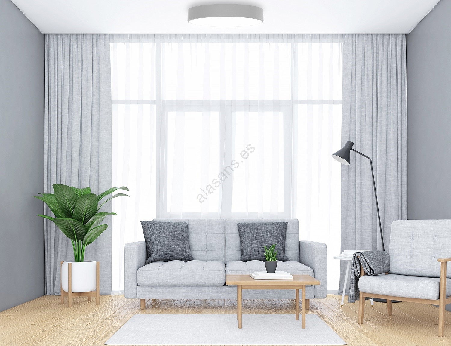 • Lámpara de techo CLEO con sensor de movimiento y crepuscular, 6xE27/24W/230V, Ø 80 cm, gris
