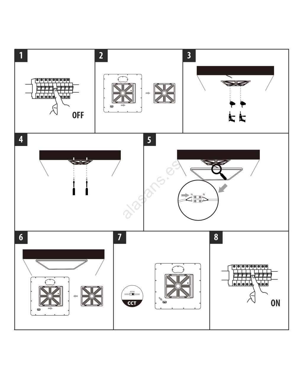 • Plafón LED de techo 40W, 230V, 3000/4000/6500K, 50 x 50 cm, negro