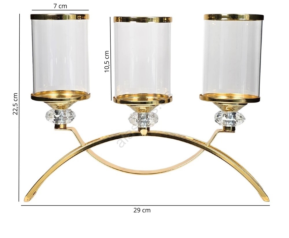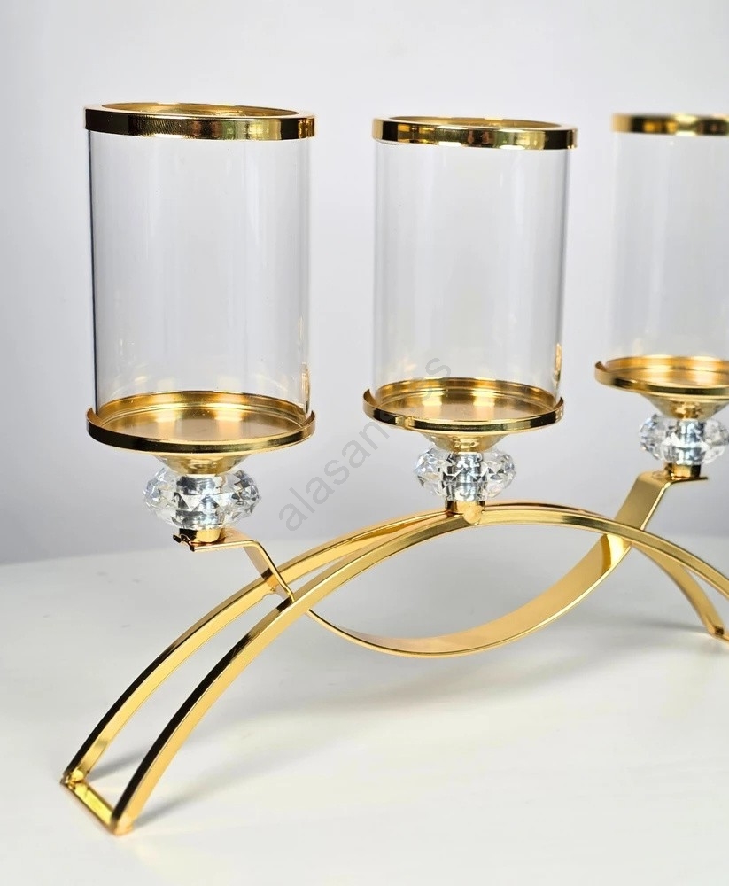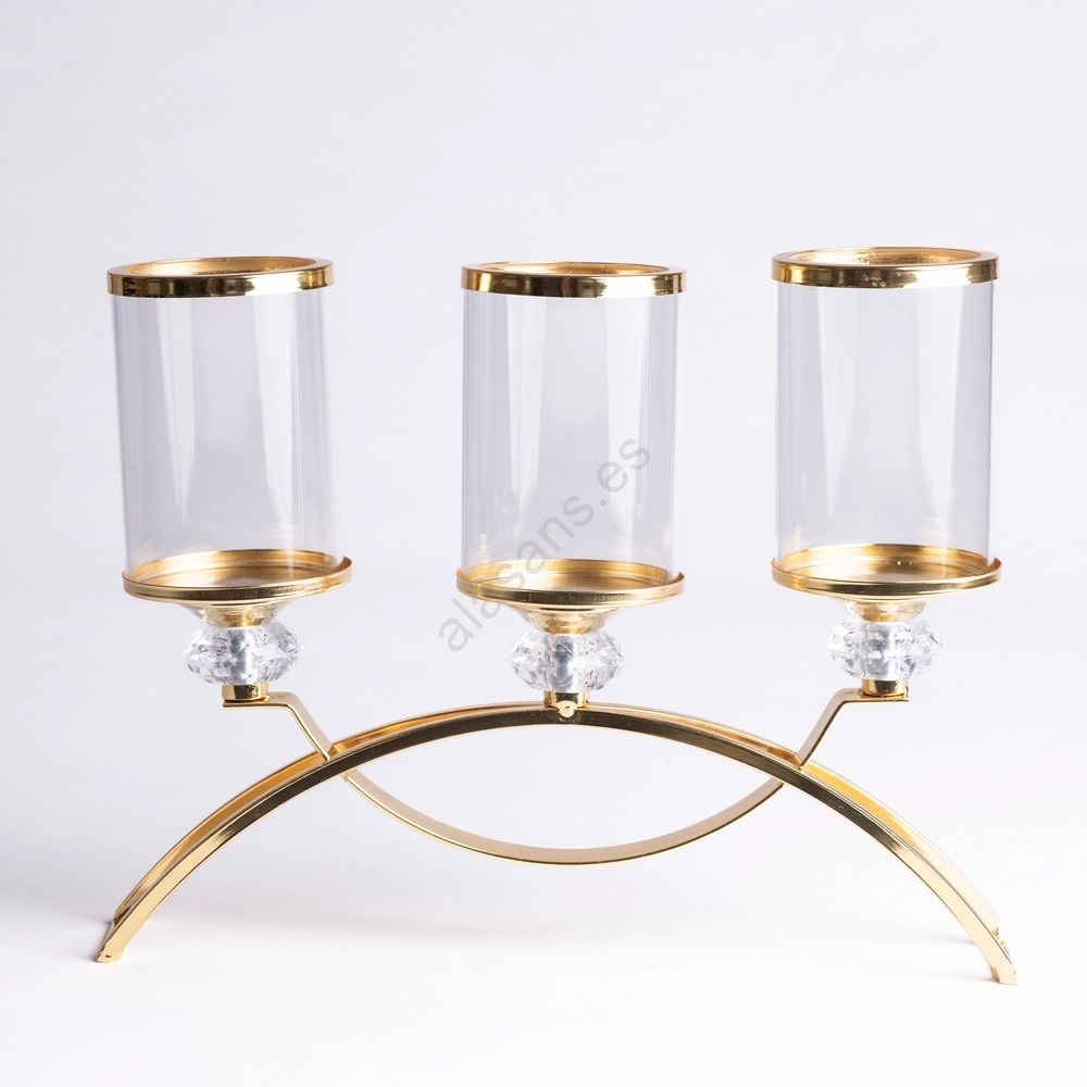 • Candelabro elegante con acabado dorado.