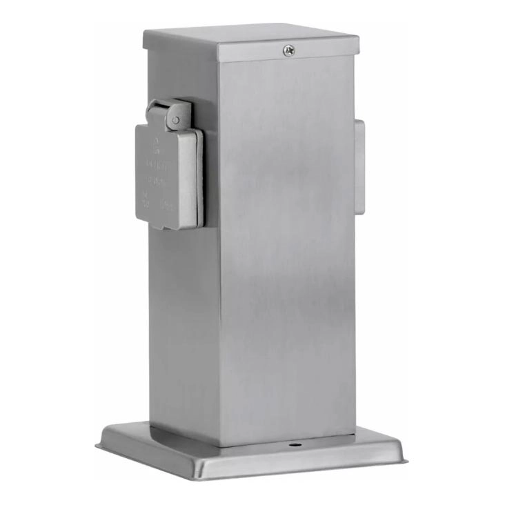 Poste de enchufe de exterior 2Z 230V cromo mate IP44