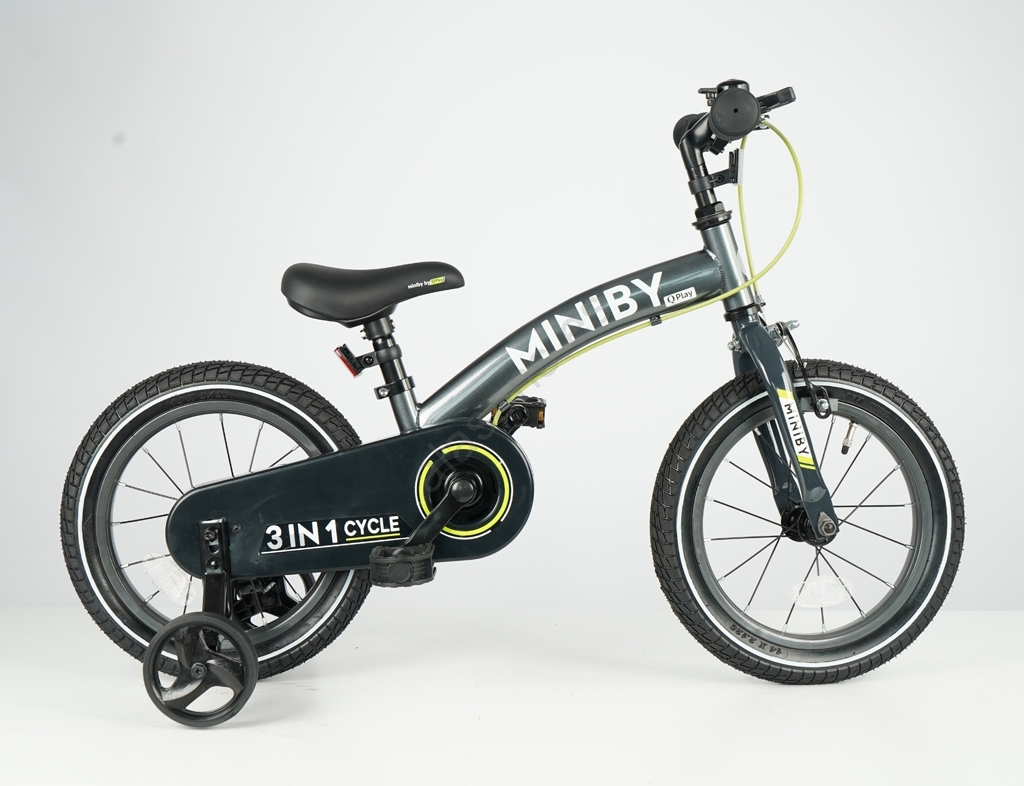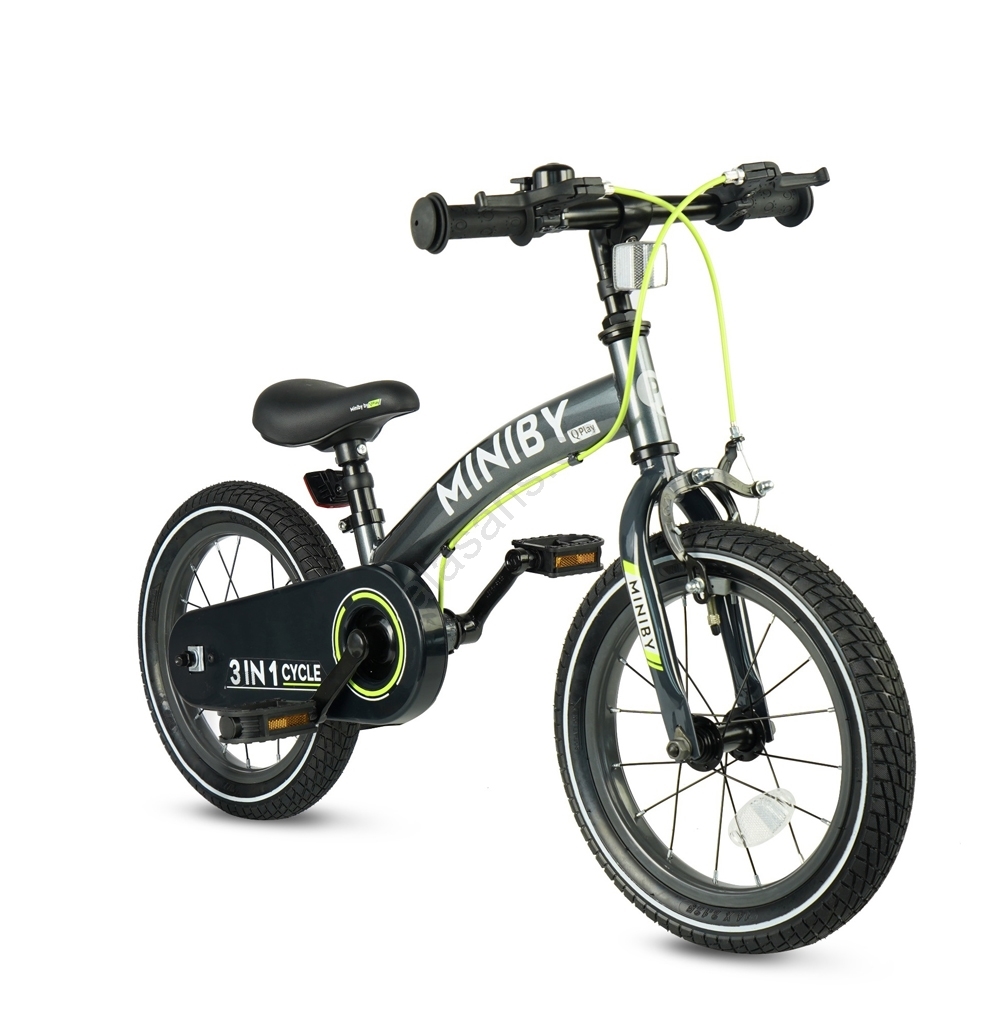 QPlay - Bicicleta infantil 14" MINIBY 3 en 1 gris