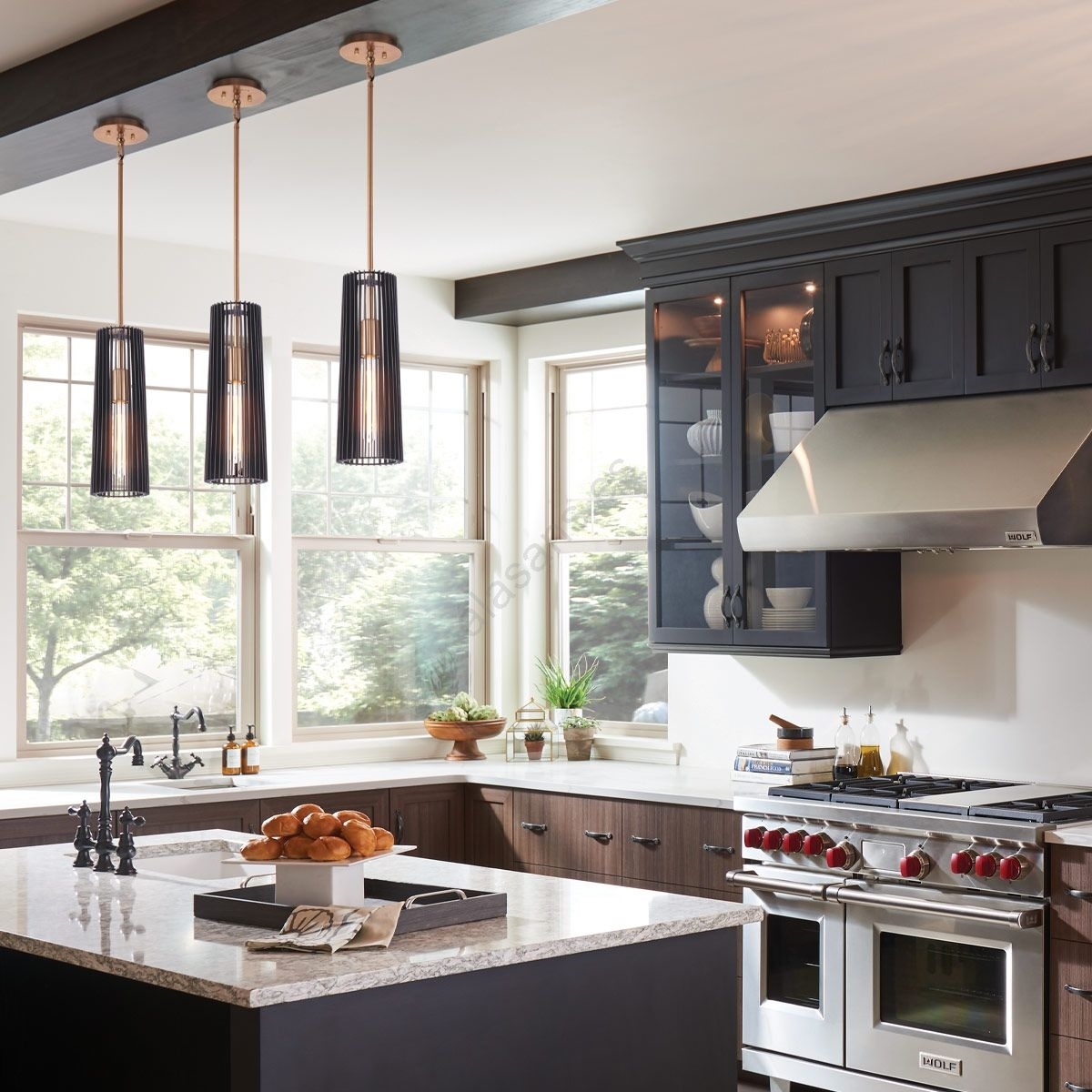Quintiesse - Lámpara colgante de varilla LINARA 1xE27/60W/230V diámetro 15,2 cm negra/dorada