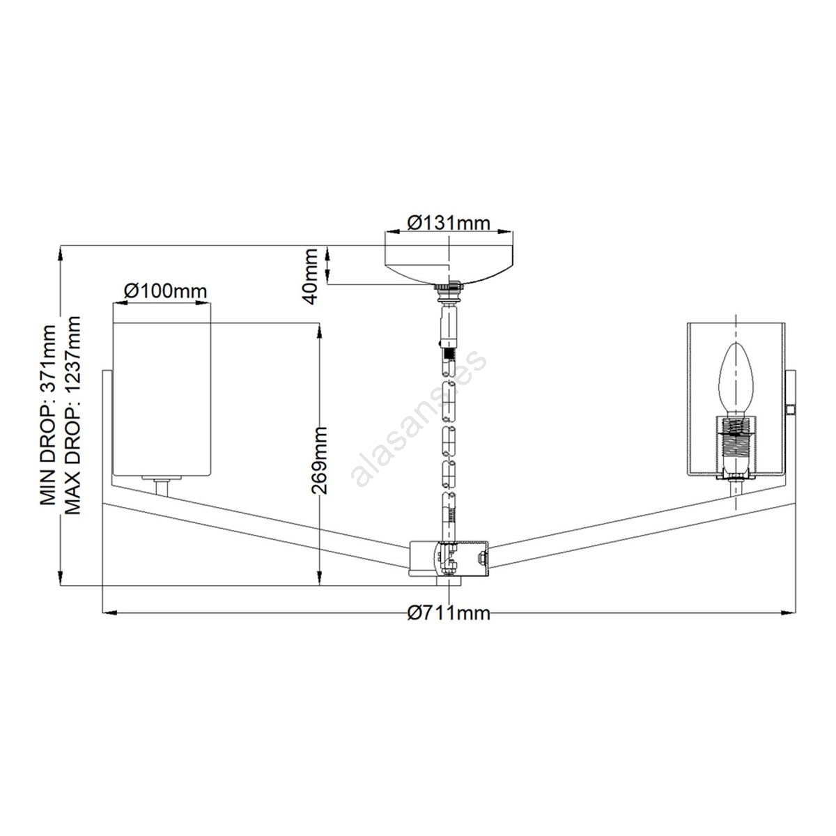 Quintiesse - Lámpara colgante con varilla NYE 6xE14/40W/230V Ø 71,1 cm cromo mate