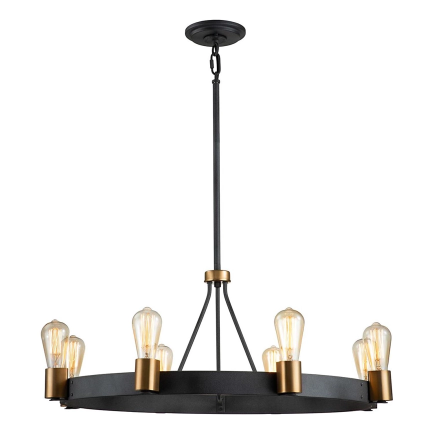 Quintiesse - Lámpara de suspensión con varilla SILAS 8xE27/60W/230V Ø 82,9 cm negro/dorado