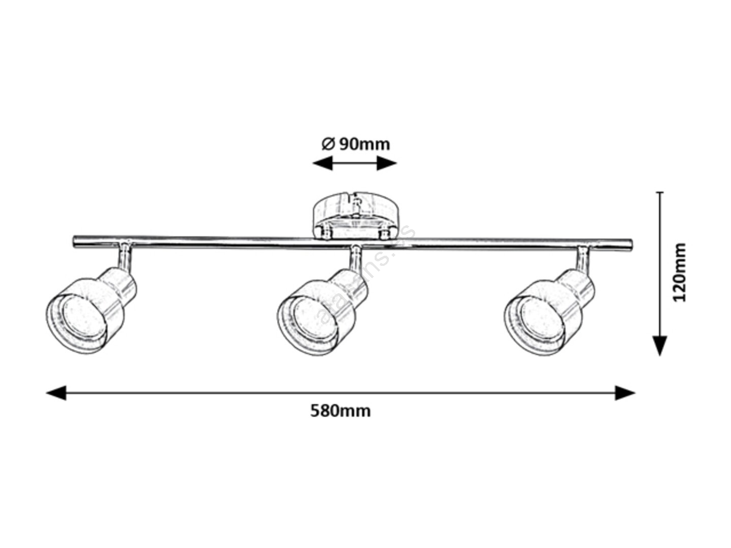 La moderna lámpara de focos Blake con 3 bombillas es una excelente opción para diversas estancias de su hogar: puede instalarla en la sala de estar, dormitorio, comedor o incluso en la cocina. Esta luminaria completamente metálica con acabado en cromo satinado se fija a la pared mediante una base decorativa redonda. Las cabezas flexibles de la lámpara están montadas en una barra horizontal que se conecta a la base decorativa. Gracias a ellas, podrá iluminar eficazmente toda la habitación. La lámpara Blake funciona con tres bombillas de hasta 50W cada una. El tipo de casquillo es GU10. Según su preferencia y el lugar de instalación, puede elegir fuentes de luz en blanco cálido o blanco natural. Las dimensiones de esta lámpara de focos con 3 bombillas son: ancho 580 mm, alto 145 mm, distancia desde el techo 120 mm. Este modelo se entrega sin fuente de luz.